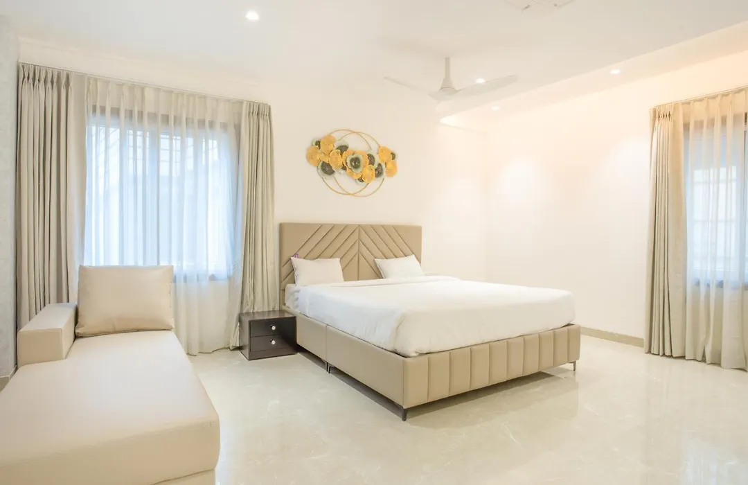 Let Home apartment is fitted with an equipped kitchen. Hyderabad Rajiv Gandhi International airport is at a 32-minute driving distance, and VLCC bus stop is in the vicinity of Let Home apartment. Such sports activities as diving help diversify guests' leisure. This apartment has a sun terrace with views of the city.